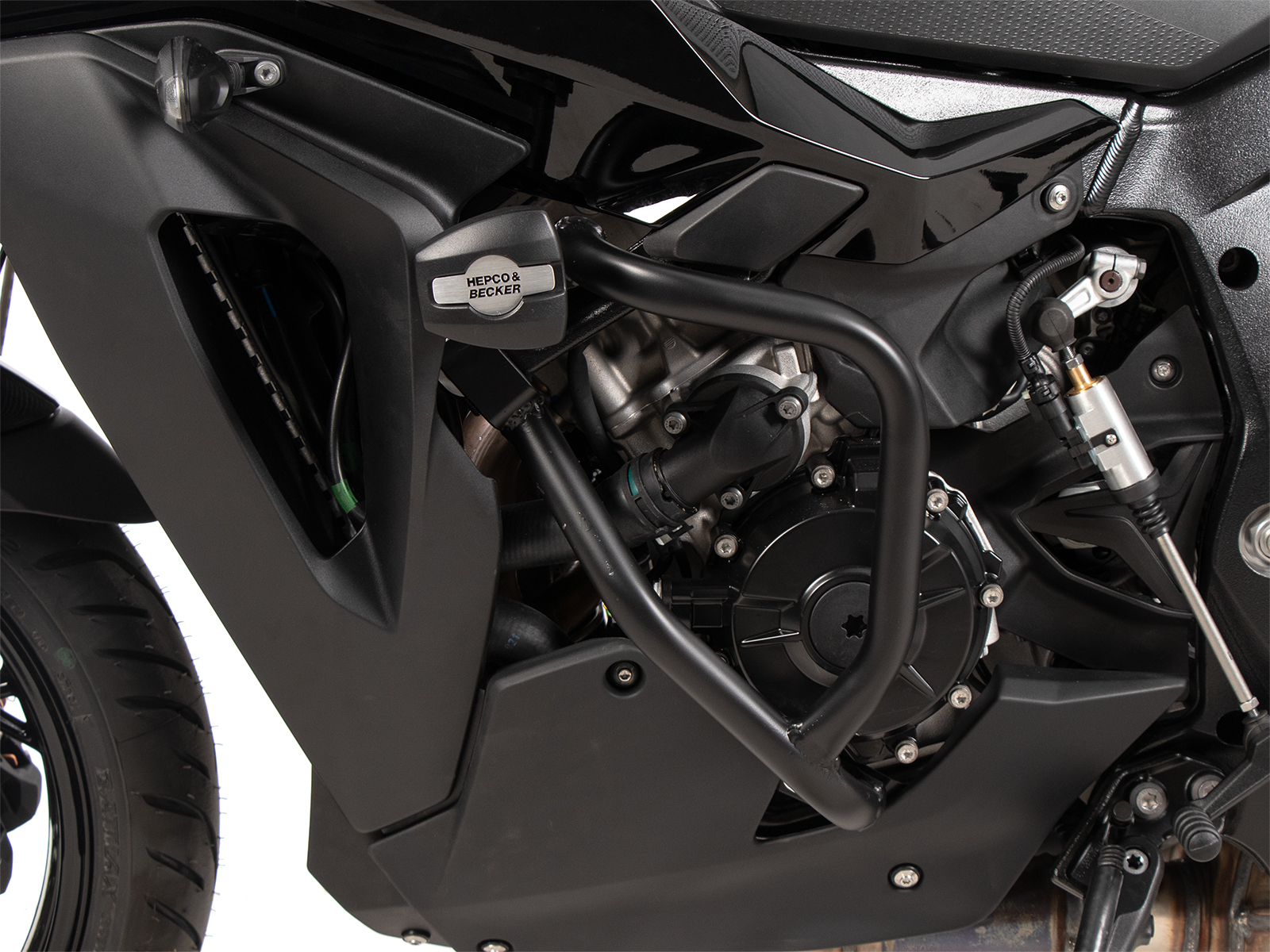 Lesarceaux de protection de Hepco & Becker dessinent parfaitement les lignes de la machine et donnent ainsi à la moto un caractère individuel. Fabriqué à partir d'une construction tube-in-tube extrêmement solide, avec un crash pad intégré.