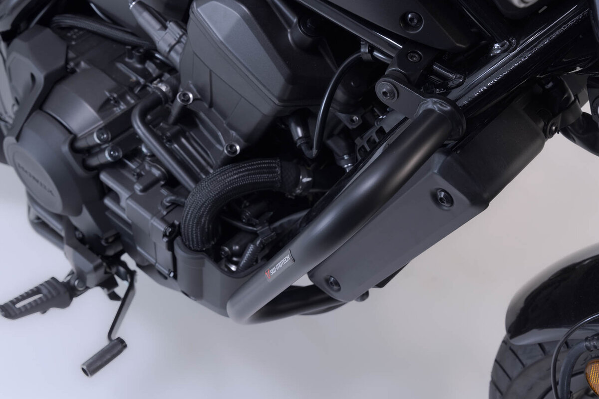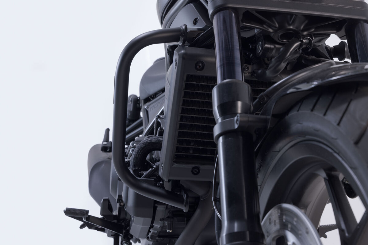 Assortis à la Honda CMX 1100 Rebel, les pare-chocs sont proposés avec un revêtement en poudre noir résistant aux intempéries et à la corrosion. La finition de surface est réalisée dans une installation ultramoderne de l'usine SW-MOTECH à Brno, en République tchèque.