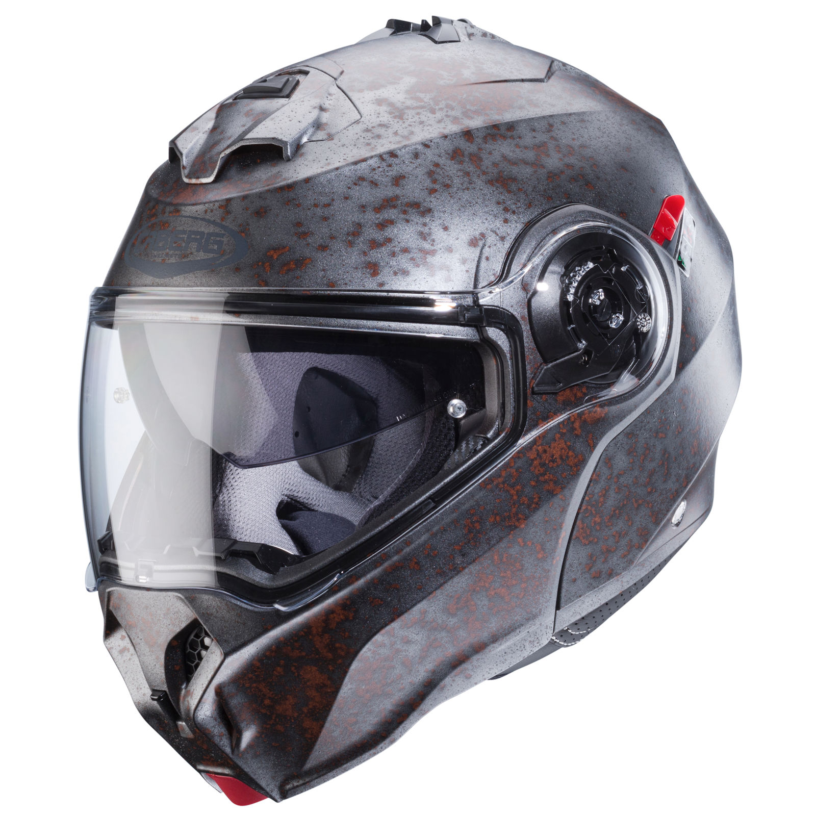 Le casque pliable Caberg Duke Evo avec le décor Rusty dans les couleurs gris/marron dispose des caractéristiques suivantes :
