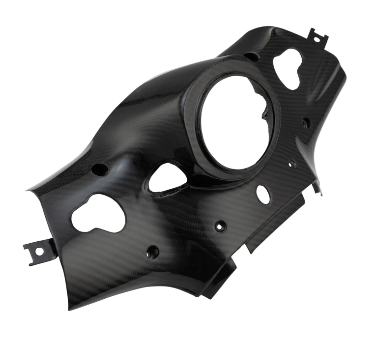 Les pièces en carbone ne sont pas seulement demandées pour leurs propriétés robustes et leur construction légère, avec des pièces rapportées en carbone, chaque fan de deux-roues suggère immédiatement un lien avec le sport automobile. Les attributs et l'apparence que le carbone apporte créent un look de course cool. Certes, l'effort pour changer le carénage inférieur du guidon est assez important, mais le résultat en vaut la peine. L'habillage de guidon en carbone est trop beau pour ne pas l'avoir ! Les pièces d'origine ont servi de base pour les moules, nous pouvons donc garantir une bonne précision d'ajustement. Les pièces en carbone elles-mêmes sont fabriquées et laminées à l'aide de moules spéciaux.
