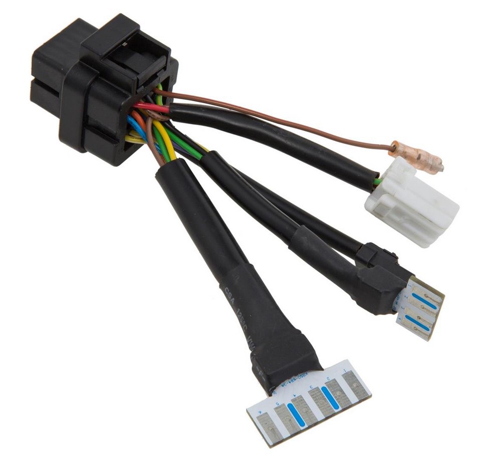 Capteur de vitesse SIP (vendu séparément): Remplace l'arbre de tachymètre d'origine et capte le signal de la vis sans fin du tachymètre. Le câble joint est relié au capteur de manière étanche. Il suffit de le tirer à travers la colonne de direction et de le brancher sur le compte-tours. La prise de mesure est ainsi très précise et indépendante des ruptures de l'arbre tachymétrique. N° d'art. 50000140