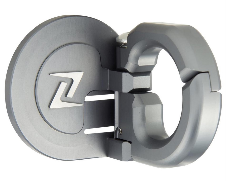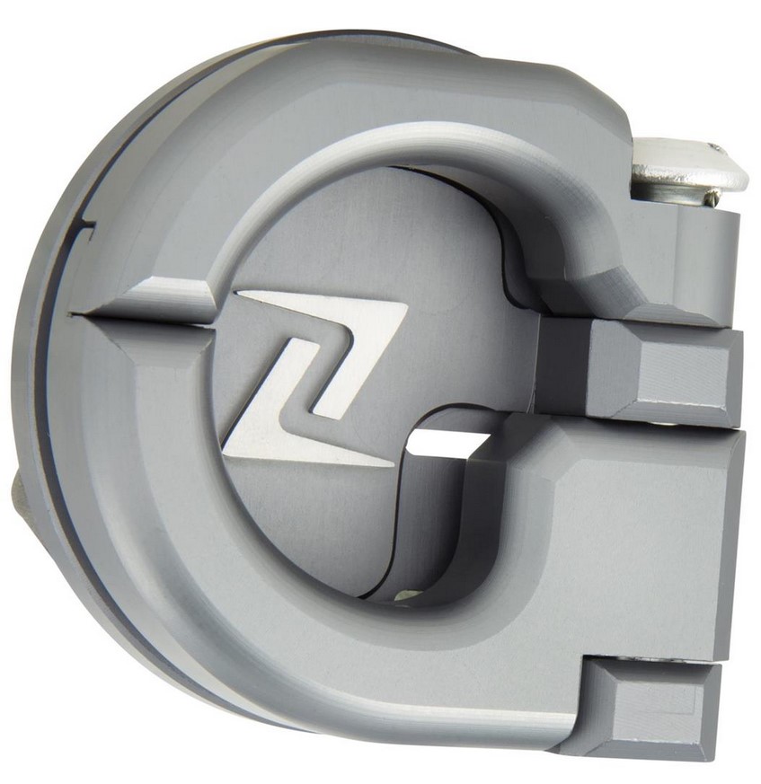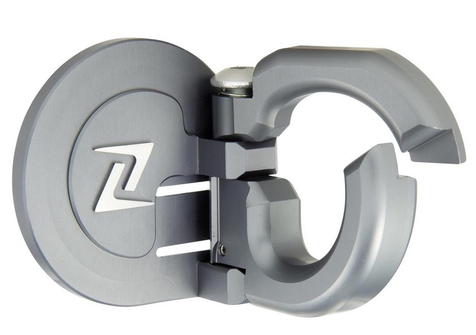 Crochet à bagages en aluminium très résistant, fraisé CNC, gris mat, anodisé, avec logo ZELIONI. Rabattable, avec dispositif de blocage.
