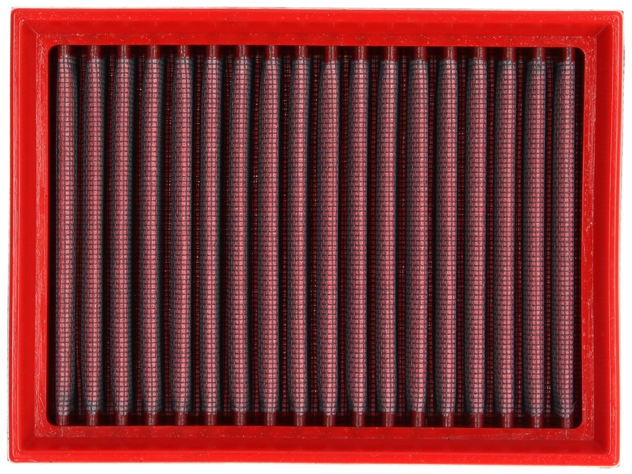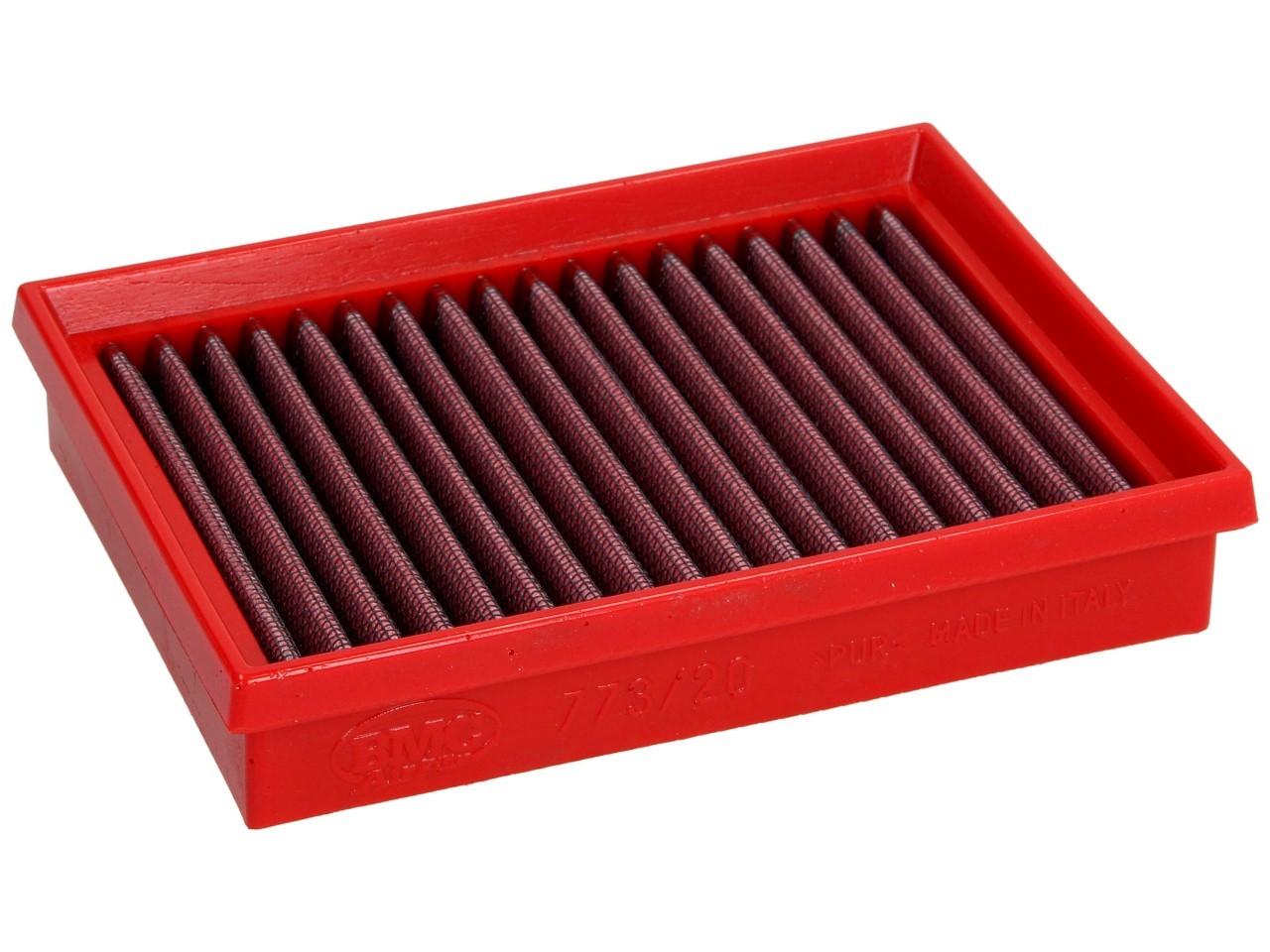 La construction du cadre du filtre BMC est fabriquée selon un processus unique appelé "Full Moulding". Cela permet de produire le filtre rouge vif en un seul processus de moulage, sans avoir à coller les coins, ce qui provoquerait des cassures. De tous les filtres à air disponibles sur le marché, le filtre à air BMC est celui qui a le moins de caoutchouc en saillie (moins de 6 mm), ce qui permet d'obtenir une surface de filtre maximale.