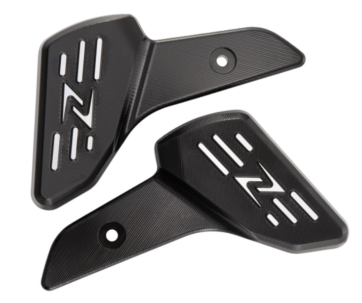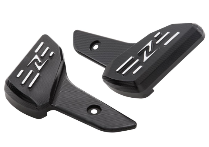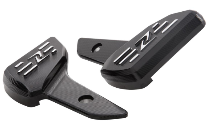 Fußrasten aus hochfestem Aluminium, CNC gefräst, eloxiert, mit ZELIONI Logo. Wird anstatt der originalen Fußraste montiert. Das Klappgelenk bleibt erhalten.
