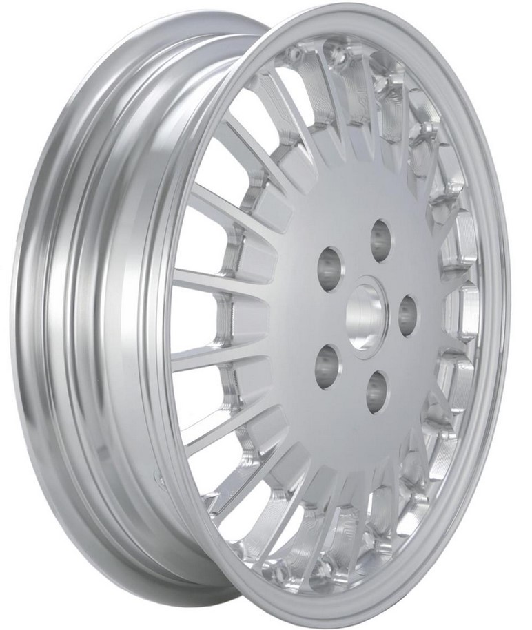 Jante en aluminium forgé de haute qualité de ZELIONI. Produit haut de gamme absoluavec une finition parfaite, 20 rayons, jante forgée, surface usinée CNC et logo ZELIONI gravé au laser. De plus, poids réduit à seulement 2,1 kg (3,2 kg jante PIAGGIO standard). La valve d'origine ne peut pas être réutilisée. Nous recommandons les valves vissables de G-Pro. (N° d'art. MV597680).