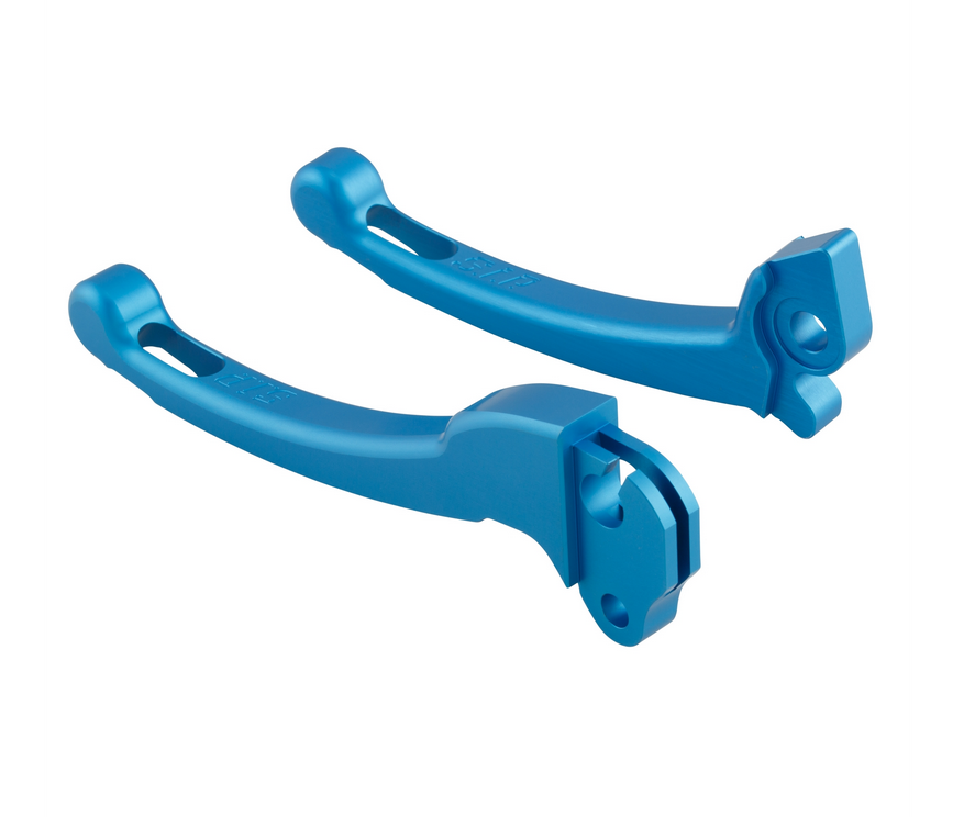 Informations sur le produit "Kit levier sport embrayage/frein pour Vespa PX 125 -150ccm, HBZ Hengtong, droite/gauche, bleu mat"