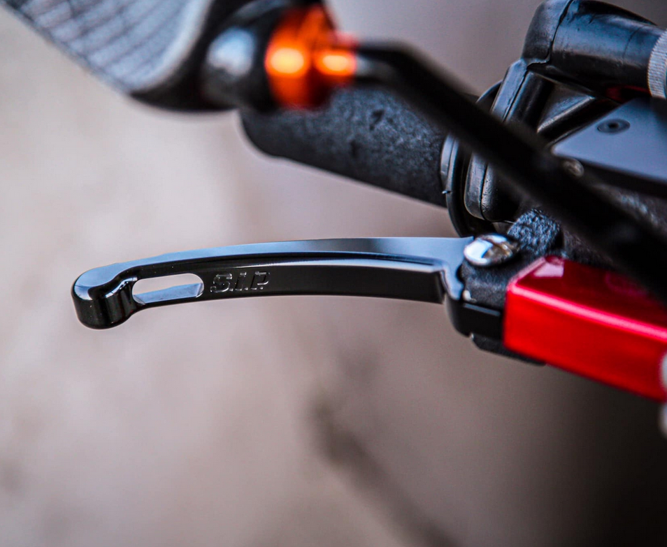 Les leviers sport fabriqués en CNC sont idéaux pour les cyclistes sportifs ambitieux, et pas seulement en raison de leur look. La longueur des leviers est calculée de manière à ce qu'ils soient de la même largeur des deux côtés, même en cas d'utilisation d'un cylindre de frein hydraulique. Les leviers sont dotés d'un point de rupture à leur extrémité. Cela permet d'éviter les ruptures en cas de chute. Ainsi, le scooter peut encore être utilisé même après un petit accident. Des leviers de frein ou d'embrayage de couleur assortie sont disponibles séparément. Pour les modèles avec frein à disque entièrement hydraulique, vérifie le maître-cylindre de frein avant de commander (HENGTONG ou GRIMECA). Livraison par pièce.