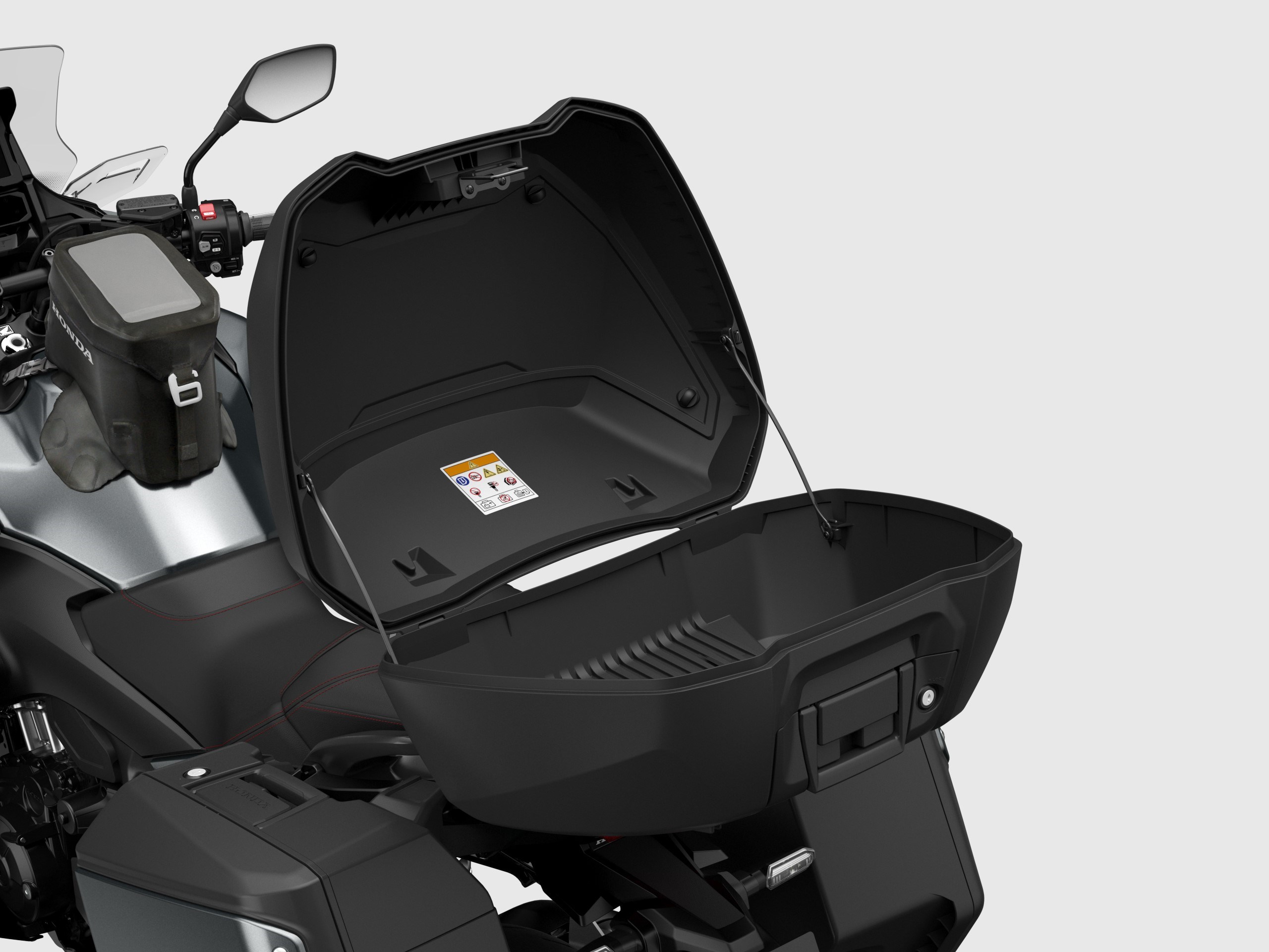 Fais confiance à la qualité et au design de Honda et crée une expérience de conduite inoubliable avec le kit Top Case original de Honda *NH-B53P* Pearl Glare White.