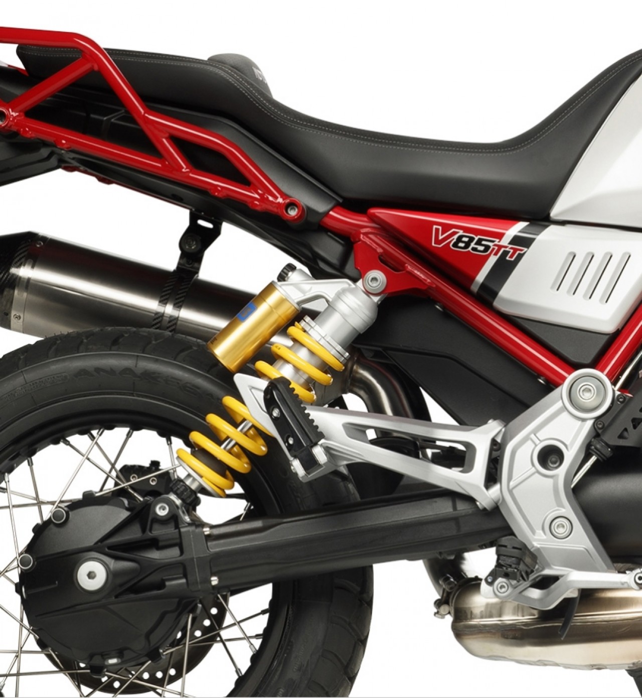Monoamortisseur Öhlins d'origine Moto Guzzi V85 TT Le monoamortisseur Öhlins Piggyback...plus
