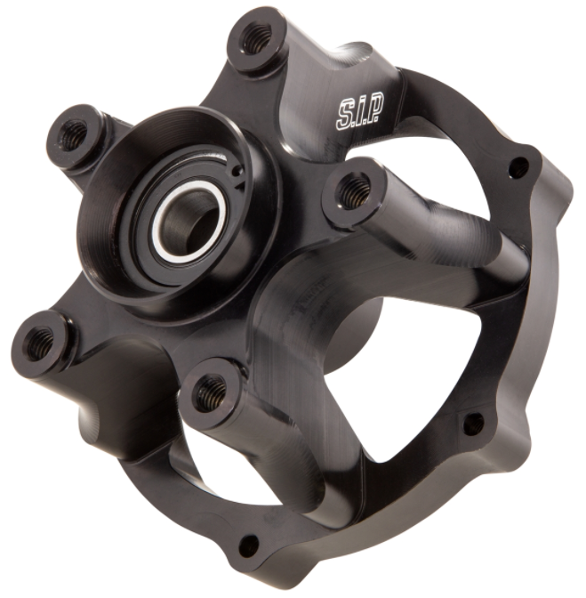 Pour le moyeu de roue fraisé CNC de SIP, un alliage d'aluminium très résistant est utilisé comme base. Grâce à l'usinage CNC et à l'équilibrage fin du moyeu de roue ainsi qu'aux roulements extrêmement légers, on obtient une rotation sensiblement plus belle par rapport à la pièce d'origine. Le moyeu de roue est adapté aux colonnes de direction PIAGGIO (par ex. MP3/GTS, etc.) en combinaison avec un disque de frein à 6 trous et un diamètre de trou de 105 mm. Pour les modèles jusqu'à 2013, la couronne dentée est nécessaire pour entraîner la vis sans fin du tachymètre (Piaggio art. n° PI267818), les modèles à partir de 2014 disposent de série d'un capteur de vitesse intégré dans le faisceau de câbles, la couronne dentée n'est plus nécessaire ici.