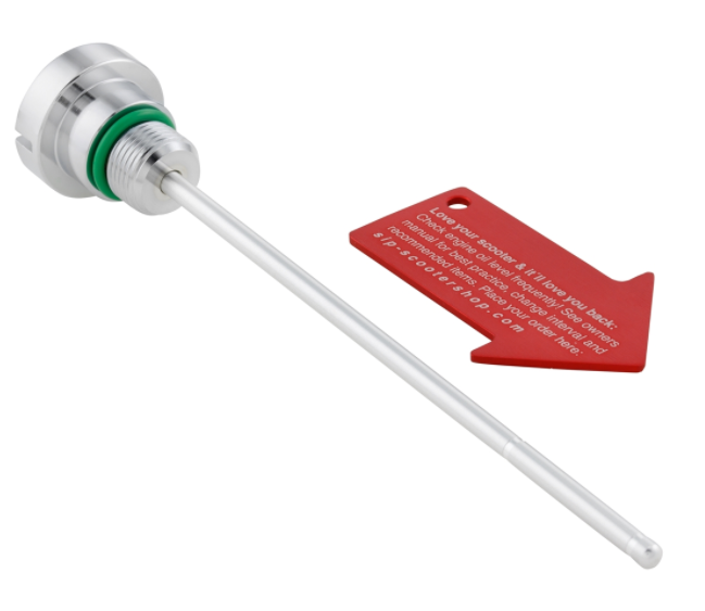 Die Öleinfüllschraube / Messstab SIP PORDOI für das Motoröl wird aus hochwertigem Aluminium CNC gefräst. Durch das schlichte Design sehen die Öleinfüllschrauben an jedem Fahrzeug schön aus und fügen sich gut in das Gesamtbild der Vespa ein. Am Messstab ist die Skala entsprechend der originalen Einfüllschrauben ausgerichtet, der passende Dichtring ist bereits angebracht. Oft werden die serienmäßigen Einfüllschrauben bei parkenden Fahrzeugen entwendet. Um Unbefugten die Arbeit zu erschweren, hat SIP an ein kleines Sicherheitsplus gedacht und liefert ein spezielles Montage-Tool mit den Einfüllschrauben welches praktischer Weise auch als Schlüsselanhänger genutzt werden kann.