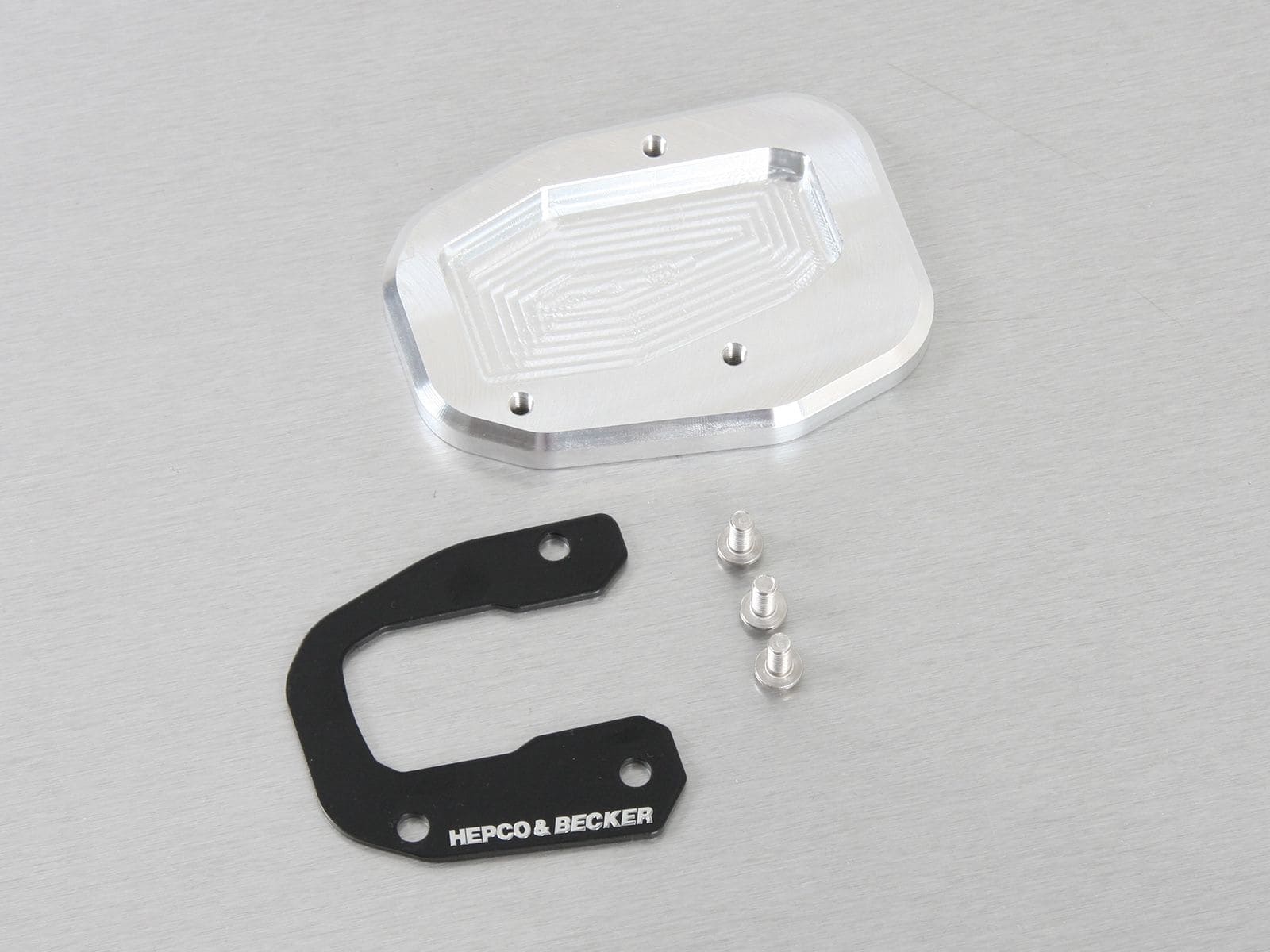 Surtout lorsqu'elle est chargée ou sur un terrain non stabilisé, la moto risque de s'enfoncer et de basculer sur la béquille latérale. Pour éviter ce danger à ta moto, il est recommandé d'utiliser une plaque de béquille latérale spécifique au modèle et fraisée de Hepco & Becker. Grâce à l'augmentation de la surface de la béquille latérale, qui est environ deux fois plus grande que celle de la béquille d'origine, protège parfaitementta moto contre les mésaventures lors de l'arrêt ou du stationnement.