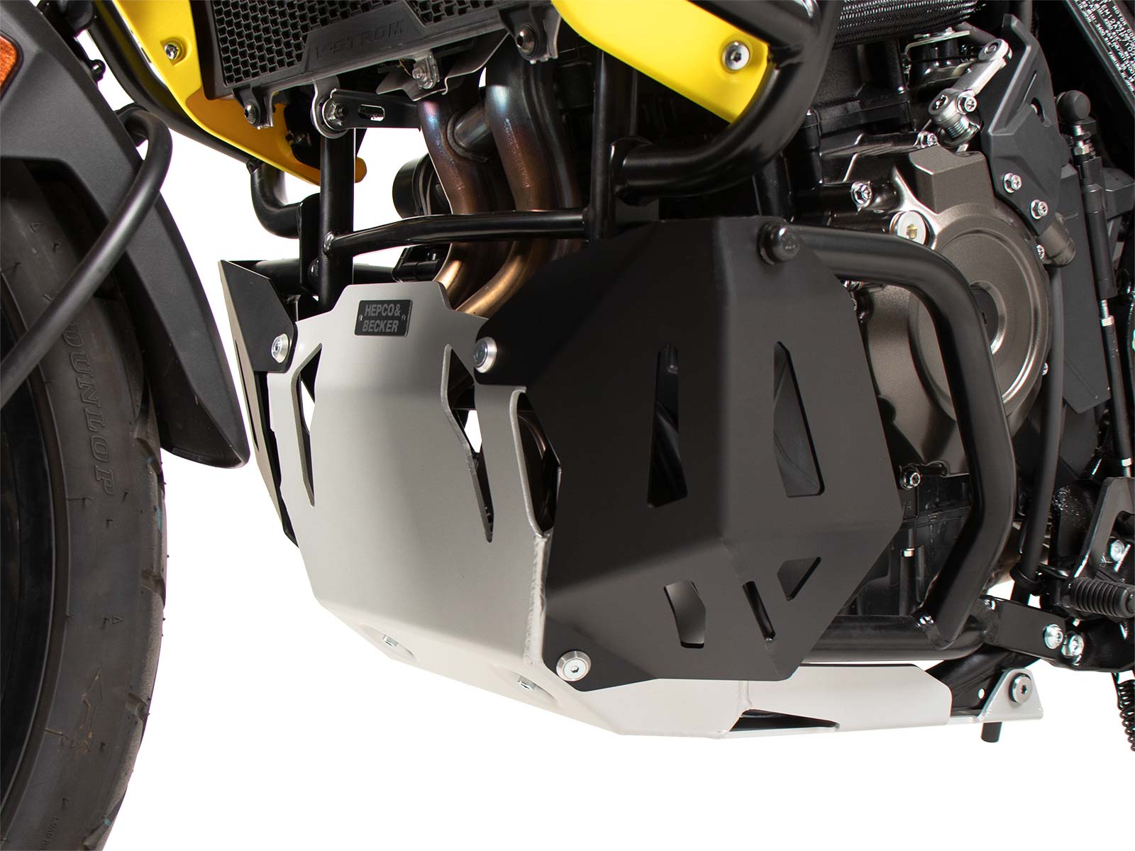 Plaques de protection moteur de Hepco & Becker n'améliorent pas seulement l'apparence de ta moto, elles soulignent aussi son look tout-terrain.