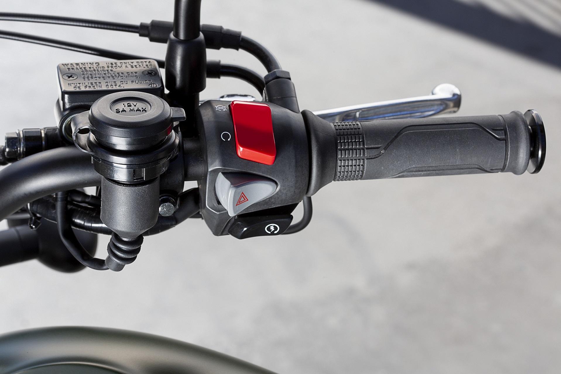 Die Integration der Steckdose in das bestehende Design wirkt etwas hemdsärmlig. Dafür ist die Steckdose sehr robust und macht hervorragend ihren Job. Verbraucher werden sehr gut versorgt. Die Montage ist denkbar einfach, weil die Kabel zum Anschliessen bei der Honda CL 500 bereits am Lenker, am rechten Griff verlegt sind und nur freigelegt werden müssen. Typisch Honda sind alle nötigen Sachen dabei und sehr gut beschrieben.