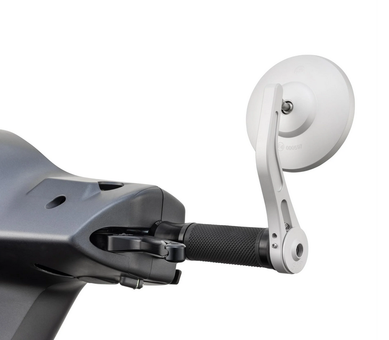 Informations sur le produit "Rétroviseur d'extrémité de guidon pour Vespa, gauche ou droite, rond, argent mat"