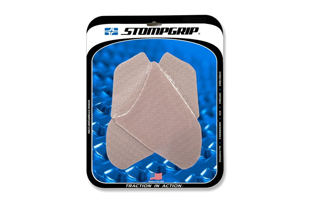 Les tampons de traction Stompgrip s'adaptent individuellement à chaque moto. Si tu n'as pas de pad Stompgrip adapté, utilise les pads Stompgrip universels ou coupe-les comme tu le souhaites. Les pads sont disponibles en noir ou en transparent.