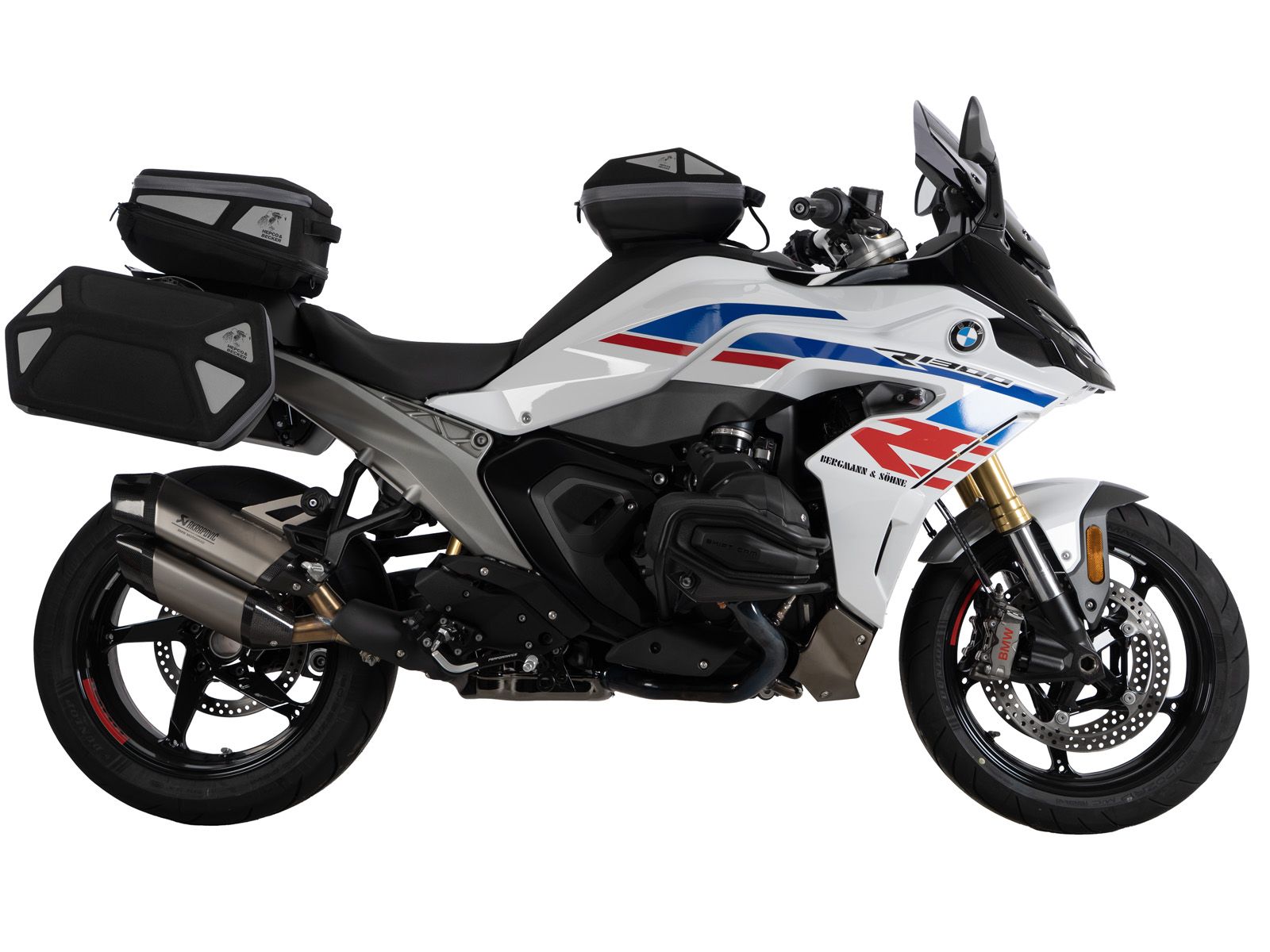 - Veille à ce que les sacoches des accessoires d'autres marques soient toujours suffisamment éloignées du pot d'échappement et que les clignotants aient un angle de rayonnement suffisant. Le jet d'échappement ne doit pas être dirigé vers les sacoches