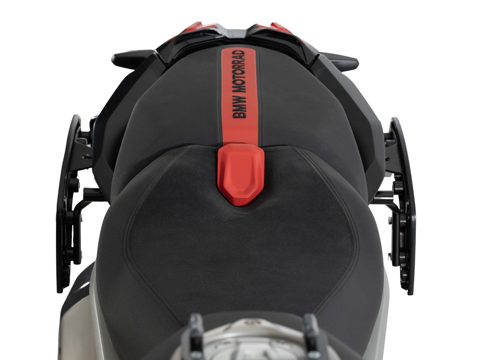 Lesupport de sacoches latérales C-Bow est prévu pour accueillir une grande variété de sacoches Hepco & Becker . Les sacs souples pour les motos sportives et dynamiques et les sacoches de selle pour les choppers et les cruisers peuvent être fixés à la moto avec le support C-Bow. Son design élégant et discret s'intègre parfaitement dans la ligne générale du véhicule. Il maintient bien sûr les sacoches de selle à l'écart du pot d'échappement chaud. Grâce à la technique moderne du C-Bow, les sacs correspondants se fixent facilement et simplement au C-Bow en un seul clic et se verrouillent de manière antivol. Les sacs sont solidement fixés à la moto et restent en place même lorsqu'ils sont chargés. Sur de nombreux modèles, les clignotants restent dans leur position d'origine. Pour plus d'informations, consulte le guide de montage.