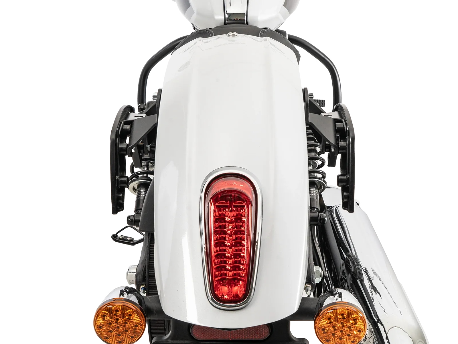 - Veille à ce que les sacoches des accessoires d'autres marques soient toujours suffisamment éloignées du pot d'échappement et que les clignotants aient un angle de rayonnement suffisant. Le jet d'échappement ne doit pas être dirigé vers les sacoches