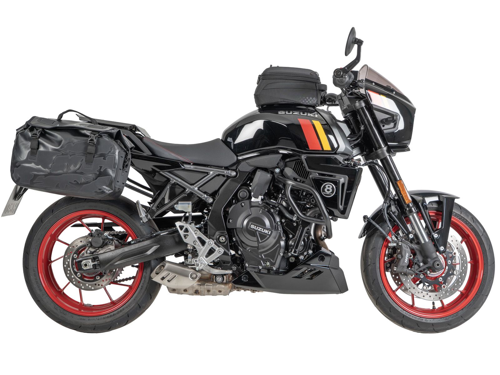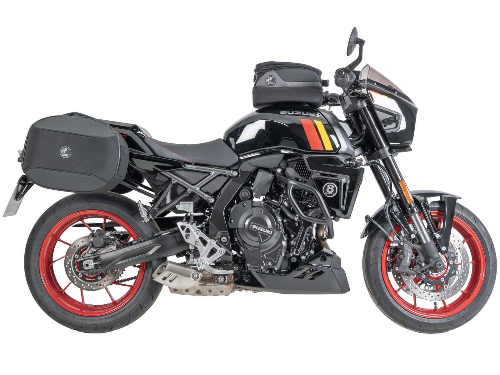 - Conçu pour l'état de série de la machine. Non testé avec des accessoires tels que : pot d'échappement, support de plaque d'immatriculation ou autres clignotants.