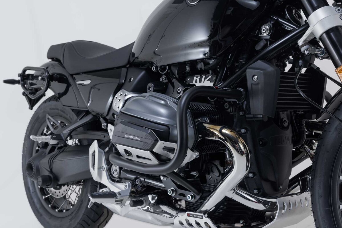 Assortis au modèle de moto, les pare-chocs en tube d'acier de 27 mm de diamètre sont proposés avec un revêtement en poudre noir résistant aux intempéries et à la corrosion. La finition de surface est réalisée dans une installation ultramoderne de l'usine SW-MOTECH à Brno, en République tchèque.