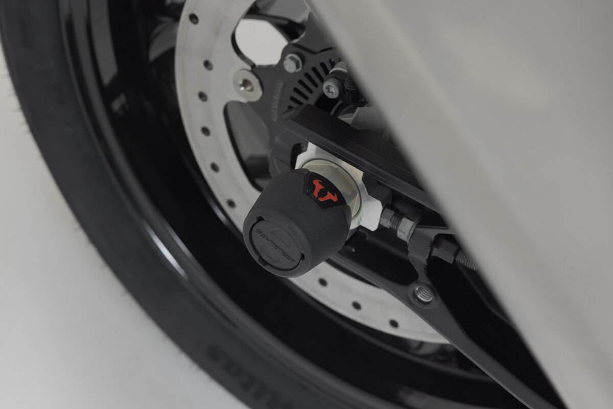Les pads de carrossage pour l'essieu arrière en plastique résistant à l'abrasion protègent le bras oscillant des dommages en cas de chute. Avec une teneur en fibres de verre de 30%, le noyau des pads de carrossage est résistant en cas d'impact. La surface lisse assure en outre d'excellentes propriétés de glisse. Le logo rouge poli du taureau apporte une touche visuelle à ta moto.