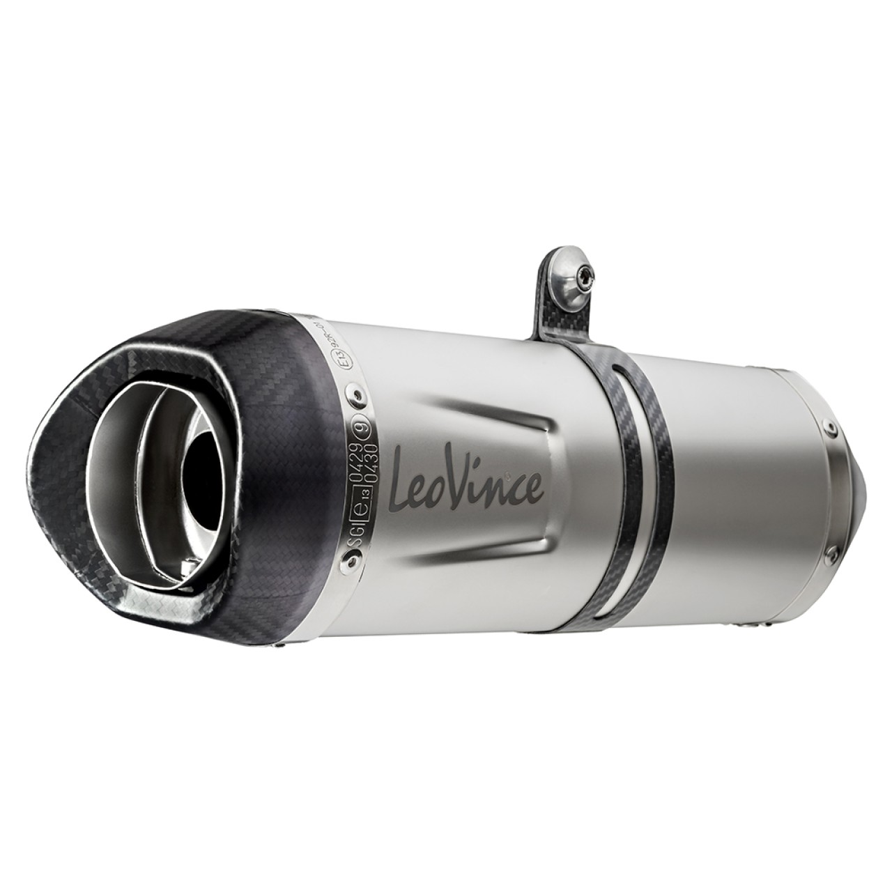 Le corps de la LV ONE EVO INOX est entièrement fabriqué en acier inoxydable AISI 304 soudé Tig. Le design aérodynamique accentué souligne la note sportive et rend le silencieux moins sensible aux influences extérieures. Une finition remarquable obtenue par le procédé de sablage "Scotch Brite" donne un aspect titane qui confère vivacité et élégance. L'embout d'échappement arrière est en carbone extrêmement résistant : léger, résistant aux chocs et à la chaleur.