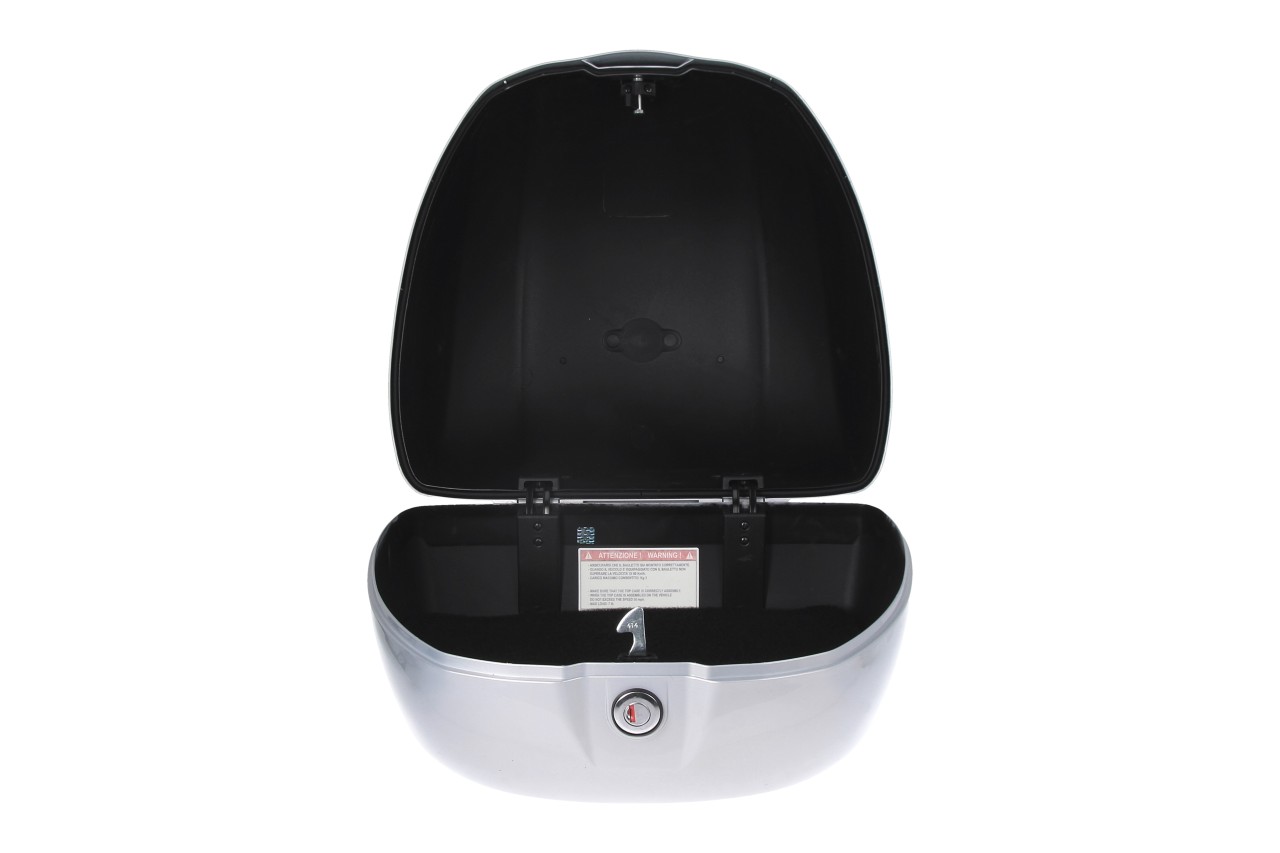 Tu trouveras le code couleur de ta Vespa sur la plaque signalétique sous ton casier à casque. Pour ce faire, ouvre la banquette et retire le compartiment à casque.
